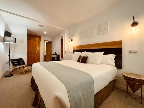 A spacious and versatile option, perfect for those who value comfort. Located on the ground floor and fully accessible for guests with reduced mobility, this exterior room offers a King size bed or two singles, with the option of adding an extra bed. Equipped with a 55" Smart TV, kettle, minibar and profesional hairdryer, it has everything you nedd for a relaxing stay. And with prior request, your pet is also welcome.